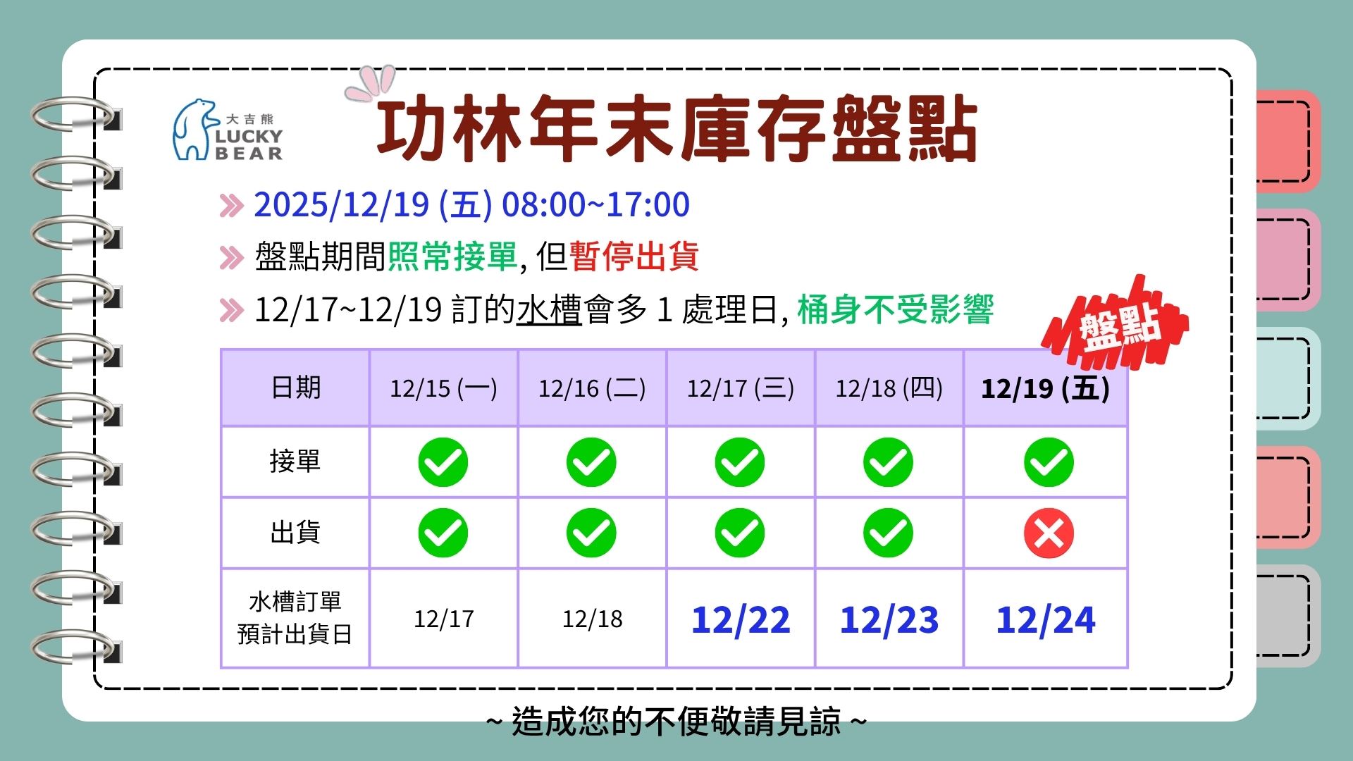 2025 功林年末庫存盤點公告